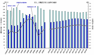 当時の有効求人倍率は0.64倍でした。